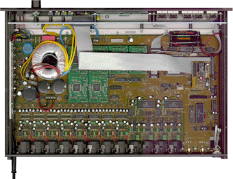 Während meiner Zeit als wissenschaftlicher Mitarbeiter am Institut für Elektrische Nachrichtentechnik (IENT) der RWTH Aachen habe ich gemeinsam mit Jochen Kleber und Swen Müller ein universelles DSP-System entwickelt, das hier kurz beschrieben werden soll. Es handelt sich dabei um ein rechnerunabhängiges 19"-Gerät, das per MIDI- der RS232-Schnittstelle komplett umkonfigurierbar ist und so nach Bedarf als digitale Frequenzweiche, Effektgerät, FIR-Filter, Synthesizer oder was auch immer an Projekten realisiert wurde dienen kann. |
